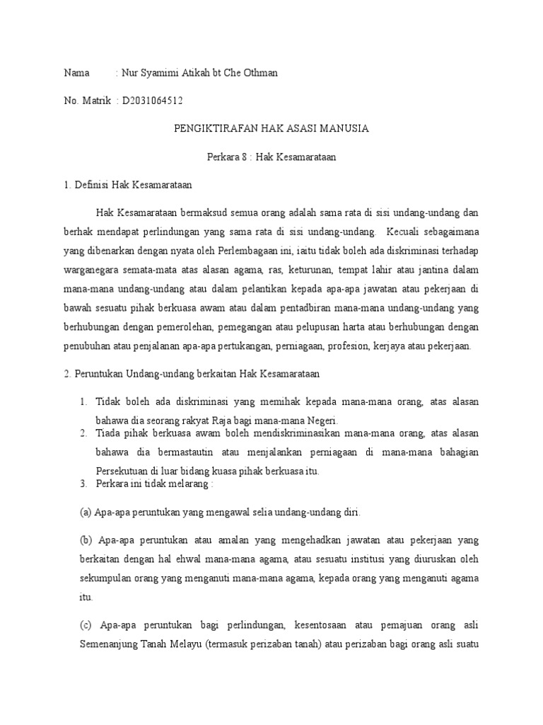 Hak Kesamarataan Kaum Di Malaysia